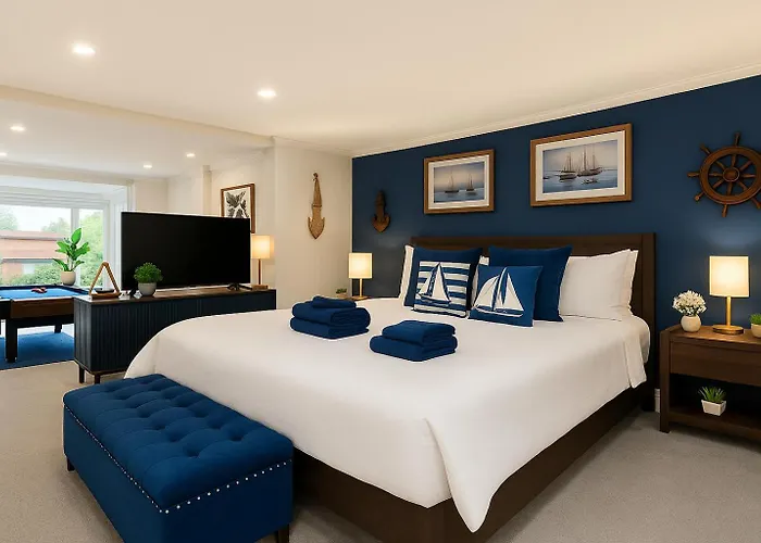Les clients peuvent dîner à Blues Point Gourmet Pizza, situé à 5 minutes à pied. Cette villa King Bed Harbour View - Captain'S Retreat est également juste à côté de l'arrêt de bus Olympic Dr before Alfred St South.